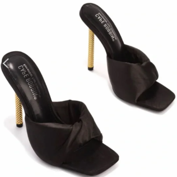 Ladies, Show power and style at your next business meeting.These high heeled mules are perfect! Featuring a padded insole, these shoes provide all-day comfort and support. The stylish metal heel provides an elegant look, and the open-toe design makes them perfect for warm weather.