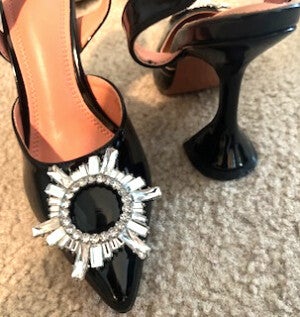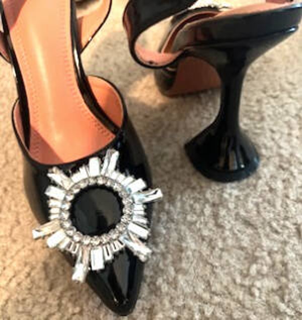 Vetaste Women Embellished Pointed Toe Heeled Slingback Shoes. Patent Leather. Ladies, Show power and style at your next business meeting or event. These high heeled slingbacks are perfect! Featuring a lightly padded insole, these shoes provide all-day comfort and support. The stylish embellishment and pointy toe provides an elegant look that is always in style.