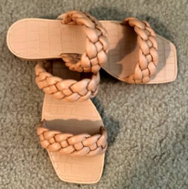 Trish Lucia women’s square open toe slides mules woven faux leather slipper