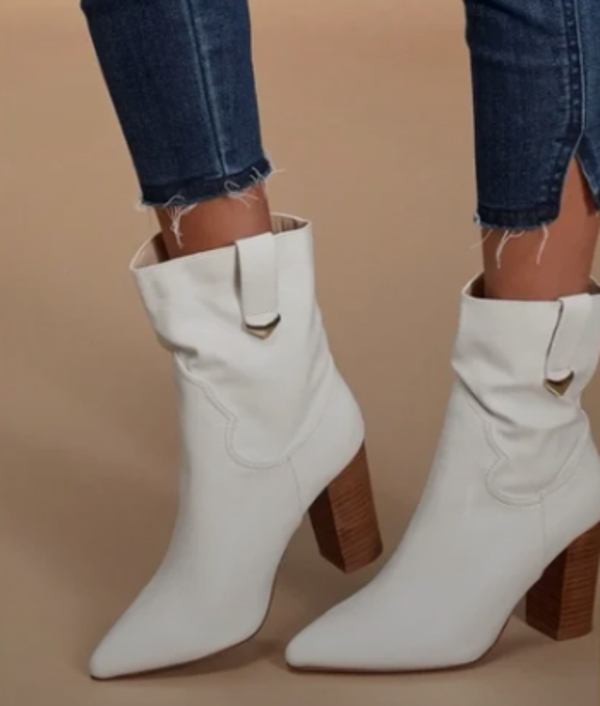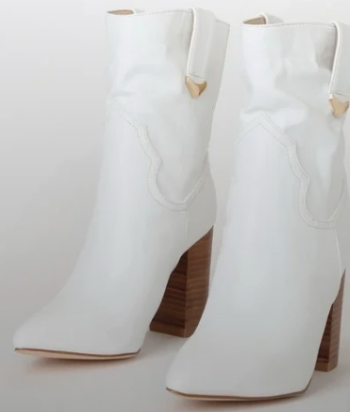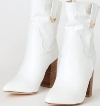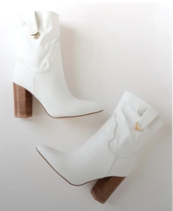 Womens Lulus Taryne Pointy Toe Western Style Ankle Boots in white vegan leather
