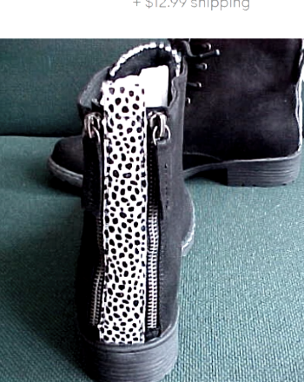 Lace up military style boot with cheetah and zipper detail detail Fits true to size