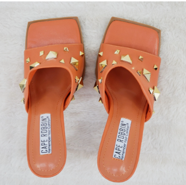 Cape Robbin Popo Studded Square Toe High heeled mule women.